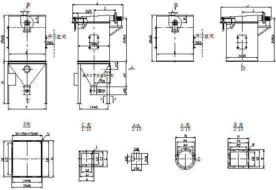 a.主机设备: 以进出口法兰为界,下部以灰斗卸灰法兰为界,气路部分以分气箱进气口为界;